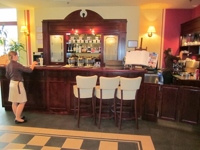 | Inside the E. Wedel cafe looking out on the Galeria Mall in Krakow. |